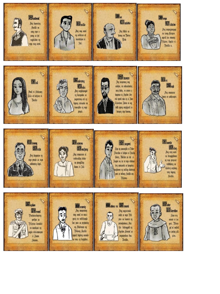 Ang itaas ng kubyerta ay ang mga tauhan na nagtataglay ng kapangyarihan sa kolonyal na pamahalaan at simbahan na rito. Basilio Ang mag-aaral ng medisina at kasintahan ni Juli. Mga Tauhan Tagpuan Banghay Paksa at aral ng akda Isa-isahin at ilarawan ang mga tauhan.