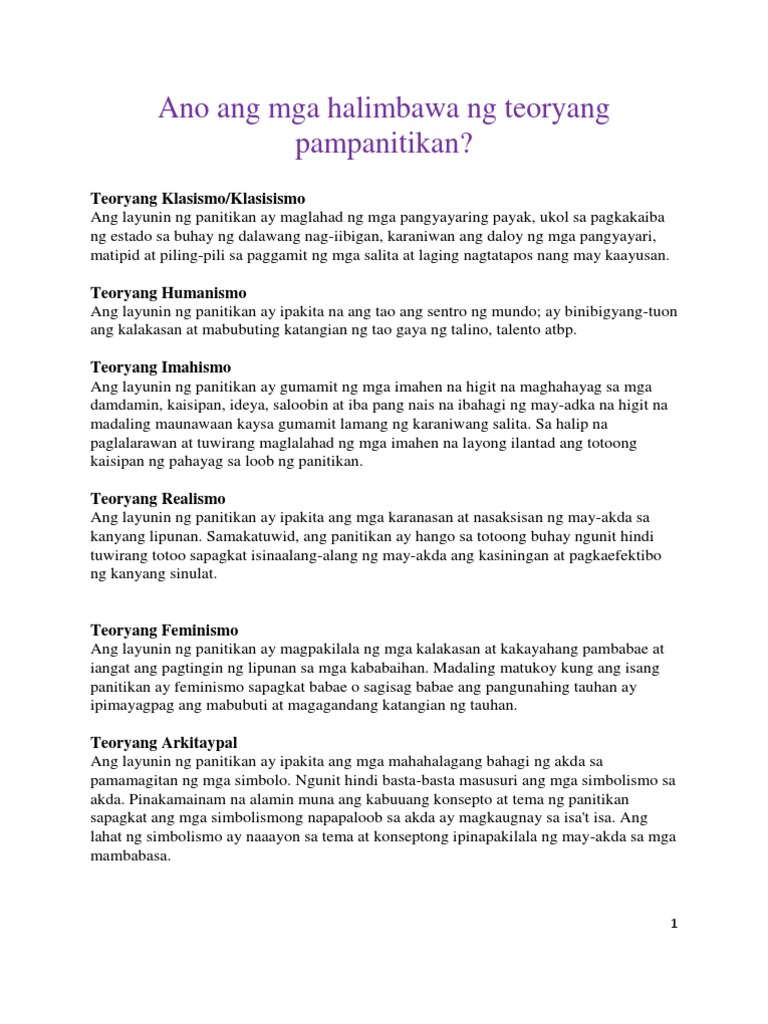 Ano Ang Mga Halimbawa Ng Teoryang Pampanitikan Pdf
