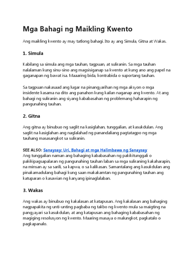 Mga Bahagi Ng Maikling Kwento Pdf