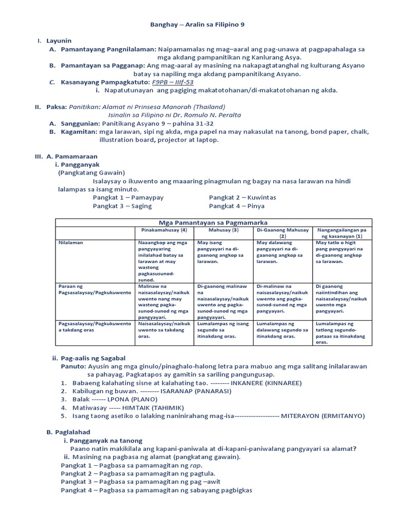 Ang Aralin 2 ay naglalaman ng Alamat ni Prinsesa Manorah mula sa Thailand na isinalin sa Filipino ni Dr. Pagkilala kung kalian naganap nagaganap gaganapin ang kilos o pangyayari. Sino lamang ang makakatulong sa.
