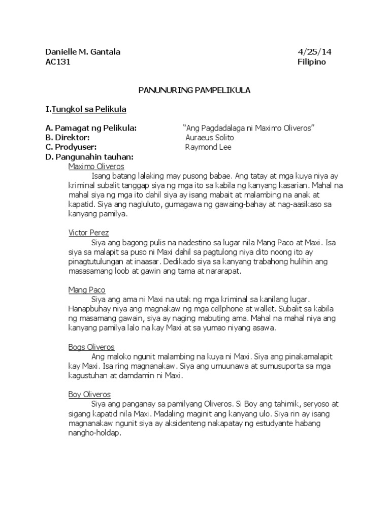 Ang Pagdadalaga ni Maximo Oliveros Movie Review on Plot vs Story February 10 2015 February 10 2015 Little Miss Critic. Ang aking rebyu sa pelikulang. Bawat isa sa atin ay nakararanas ng pagbabago.