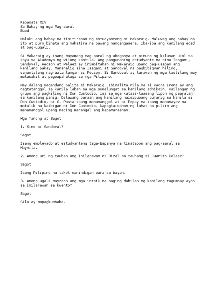Sa Bahay ng mga Mag-aaral. View KABANATA 14-APIONGpptx from ENGL 1 at Tuloso-midway H S. Tell us what you think abut this post by leaving your comments below.
