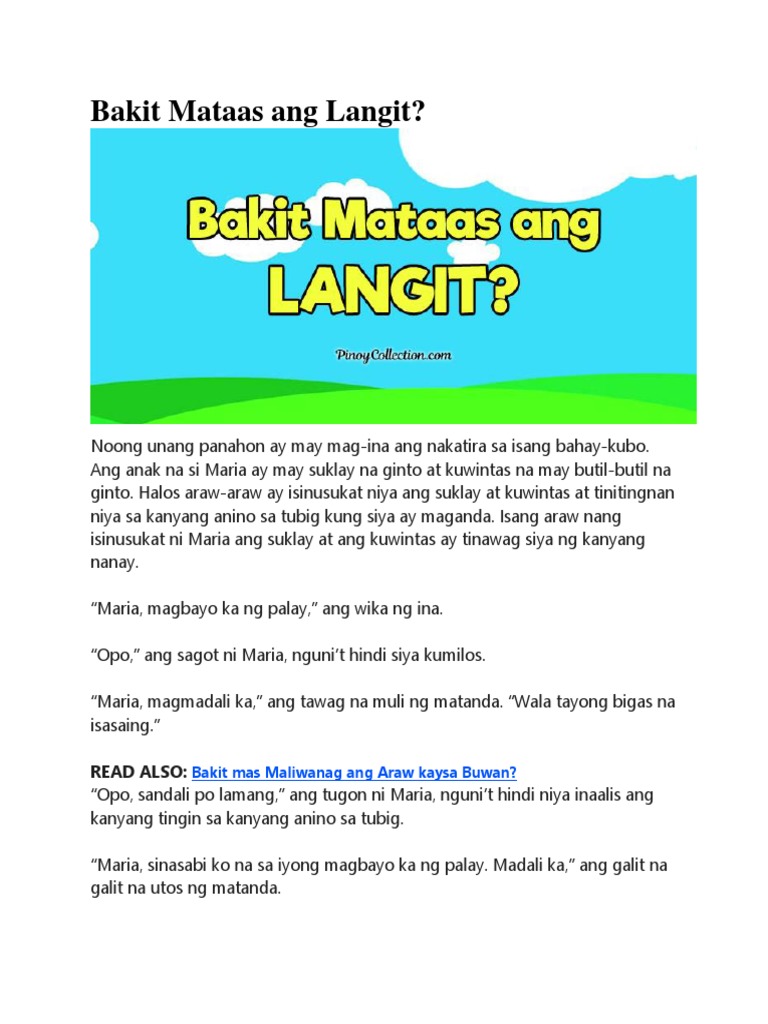 Bakit Mataas ang Langit. View Bakit Mataas Ang Langitdocx from AA 1Bakit Mataas Ang Langit Ni. Ang boud ng kwentong bayan na ito ay maging mabuti sa lahat ng oras.