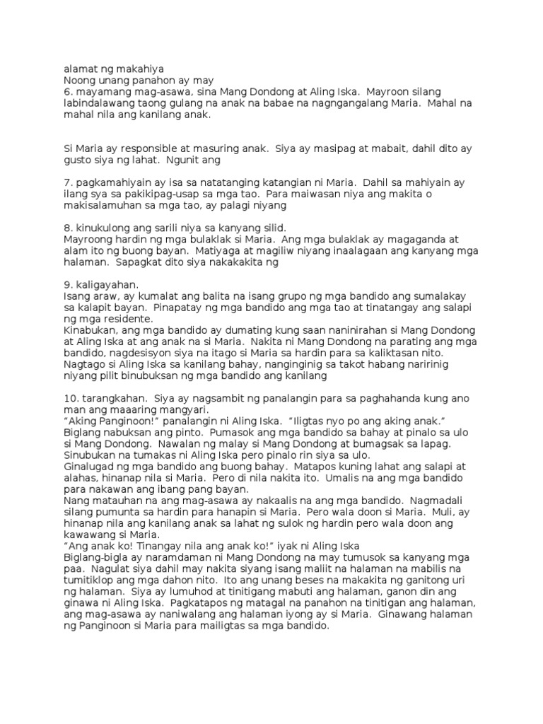 Kung nais mong makabasa ng isang halimbawa basahin ang alamat ng pinya o kaya naman ang alamat ng ampalayaO kaya naman basahin mo ang artikulo patungkol sa ano ang alamat at ang. Basahin ang mga sumusunod. Si Mang Dongdong at Aling Iska ay may kaisa-isang anak na ang ngalan ay Maria.