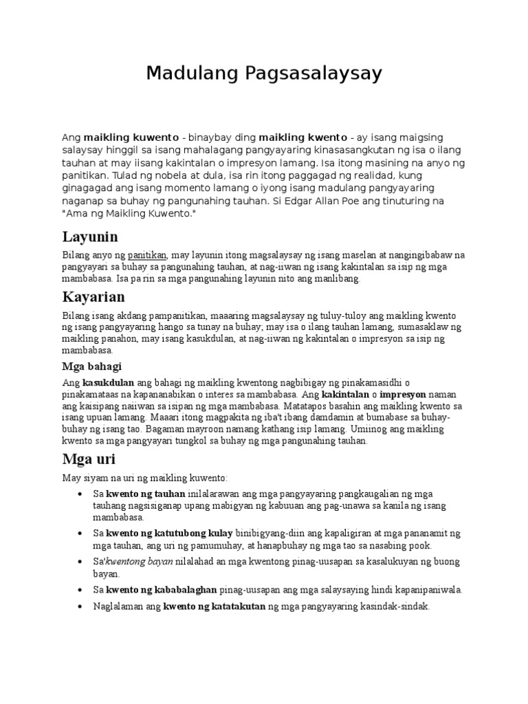 Sa kanya nakasentro ang pangyayari. Tap card to see definition. MgaManunulat Internet Ang maikling kwento ay.